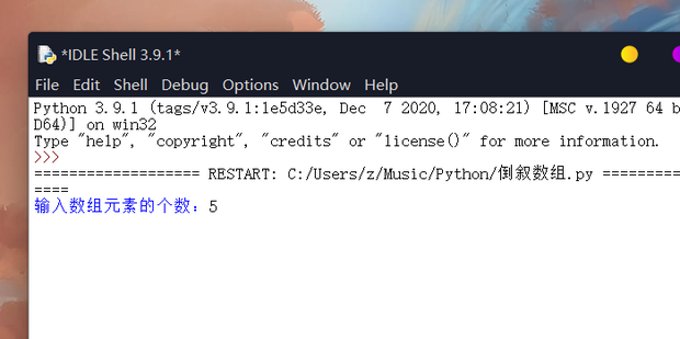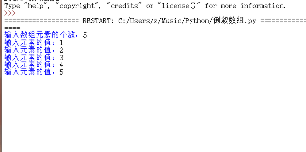 6:运行后首先输入数组的个数,这里以5为例。