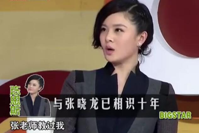 陈思斯早前上节目时自曝跟张晓龙认识上十年了,上中戏的时候张晓龙教过她课。