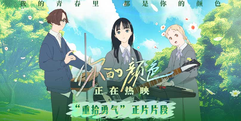 由日本天才女动画导演山田尚子执导的青春治愈动画《你的颜色》目前正在热映,今日发布“重拾勇气”正片片段,片中日暮窦子(铃川纱由 配音)、作永君(高石明里 配音)、影平路易(木户大圣 配音)三人在相处的过程中,被友情治愈的同时,也渐渐收获了直面自己内心的勇气。影片凭借其细腻轻盈的视听风格和温暖治愈的故事,从上映首日就收获了大批观众的好评。有观众表示“故事充满创作力和想象力”“全程像是眼睛呼吸到大口的清新空气”“情绪跟着影片流动,完全沉浸在影片里。”电影《你的颜色》由山田尚子导演,吉田玲子编剧,牛尾宪辅担任音乐·音乐指导,铃川纱由、高石明里、木户大圣、新垣结衣配音,曾斩获上海国际电影节金爵奖最佳动画片。影片正在热映,在这个春日,带着自己最重要的人奔赴影院吧。