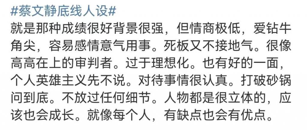 但也有人帮她说话,作为官二代的法学高材生刚下基层,轴了点也正常,估计后期会有成长线 ↓